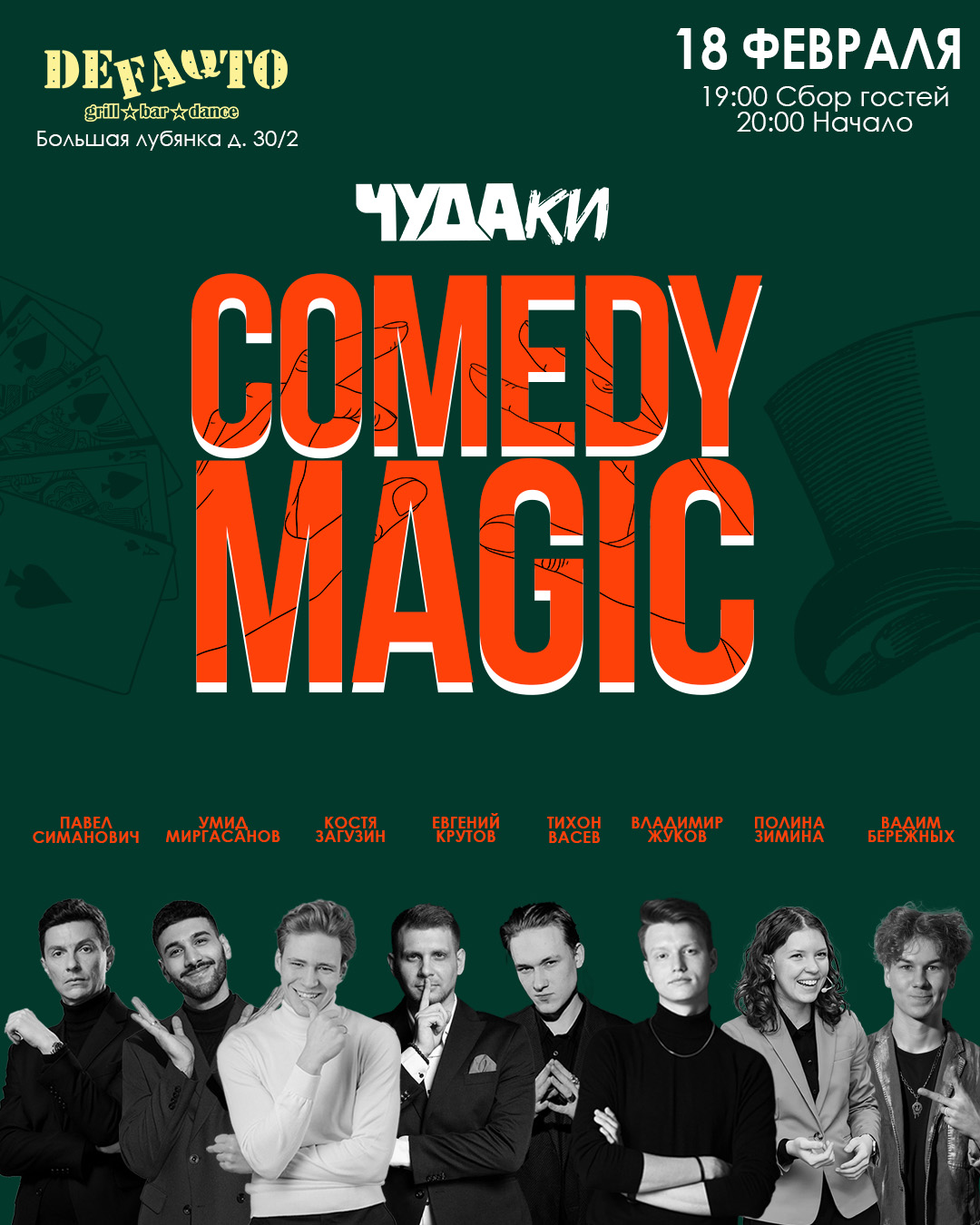 ЧУДАКИ Comedy magic - это самое смешное шоу фокусников в Москве. Состав Чуда’ков - профессиональные иллюзионисты, большие артисты жанра «Comedy Magic» И «Stand-Up Magic».