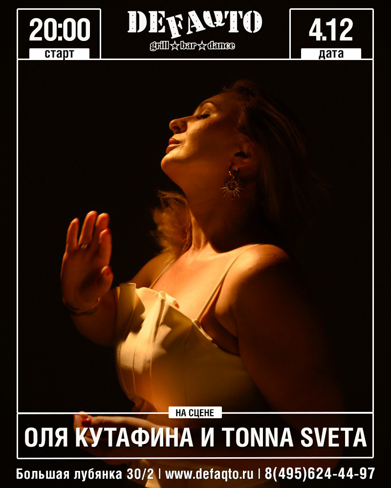 Оля Кутафина и гр.TONNA SVETA — музыкальный коллектив, который объединяет талантливых музыкантов, создающих современную и запоминающуюся музыку в стиле поп, соул, r’n’b, фанк.